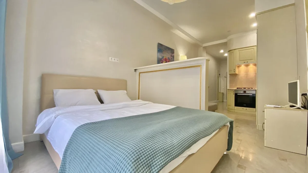 В квартире есть 1 двуспальная кровать, 1 диван на 2 места, постельное белье для всех гостей, утюг, жк-телевизор, гладильная доска, кондиционер, интернет wi-fi, балкон.